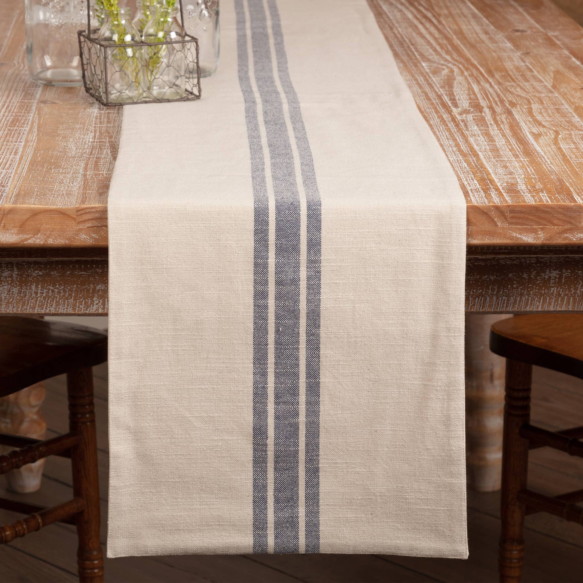 These days we can't seem to get enough of grain sack fabrics, so this collection is one of our all-time favorites! It's the perfect look for a fresh farmhouse style home! We chose a beautifully textured cotton fabric with a substantial weight, yet soft touch for the Market Place Fabrics. The woven grain sack stripes in denim blue make a striking contrast to the natural cream base. Two coordinating fabric options in the Market Place Collection offer an easy mix-and-match solution. The runner reverses to a soft cream cotton fabric and measures 36L x 13W.