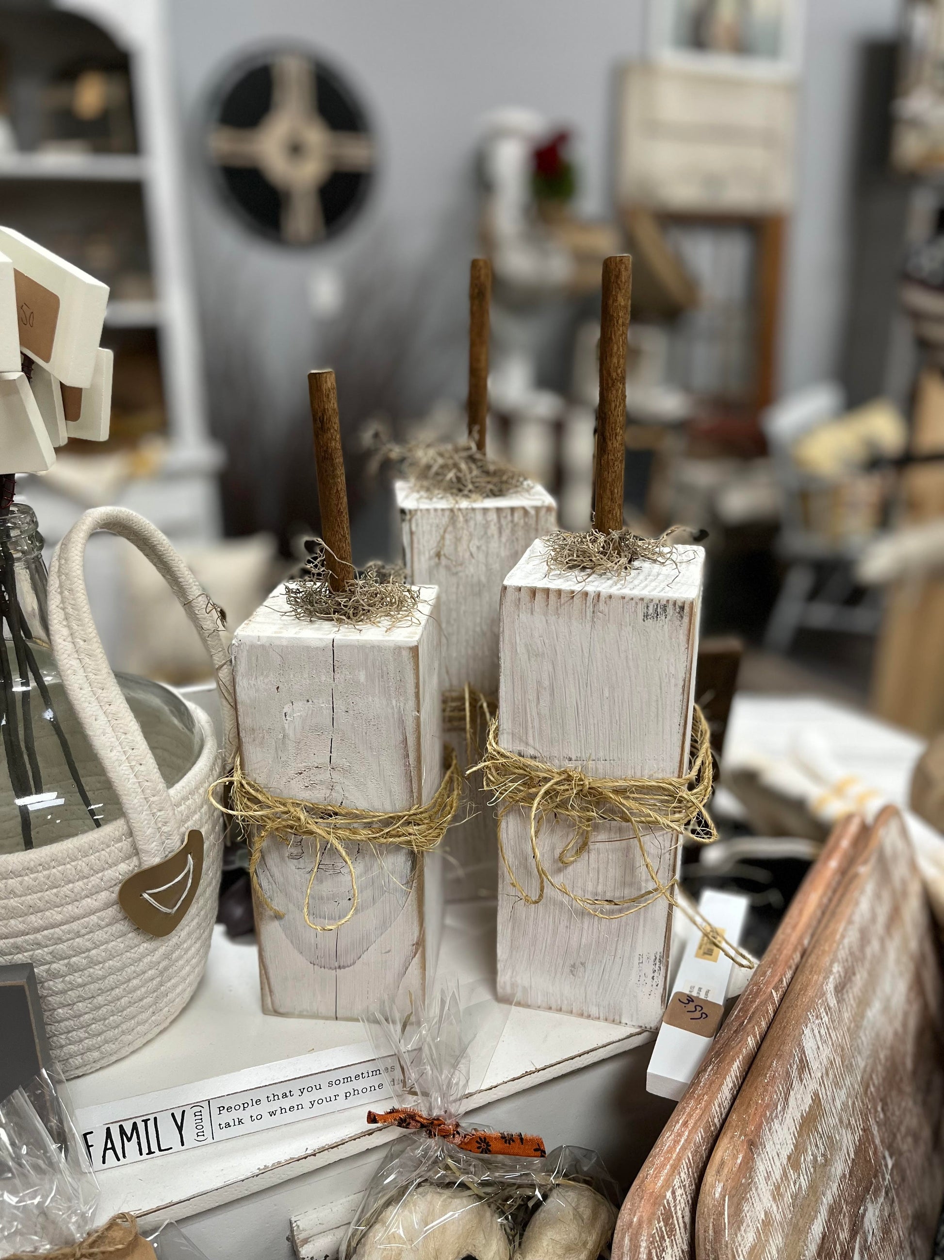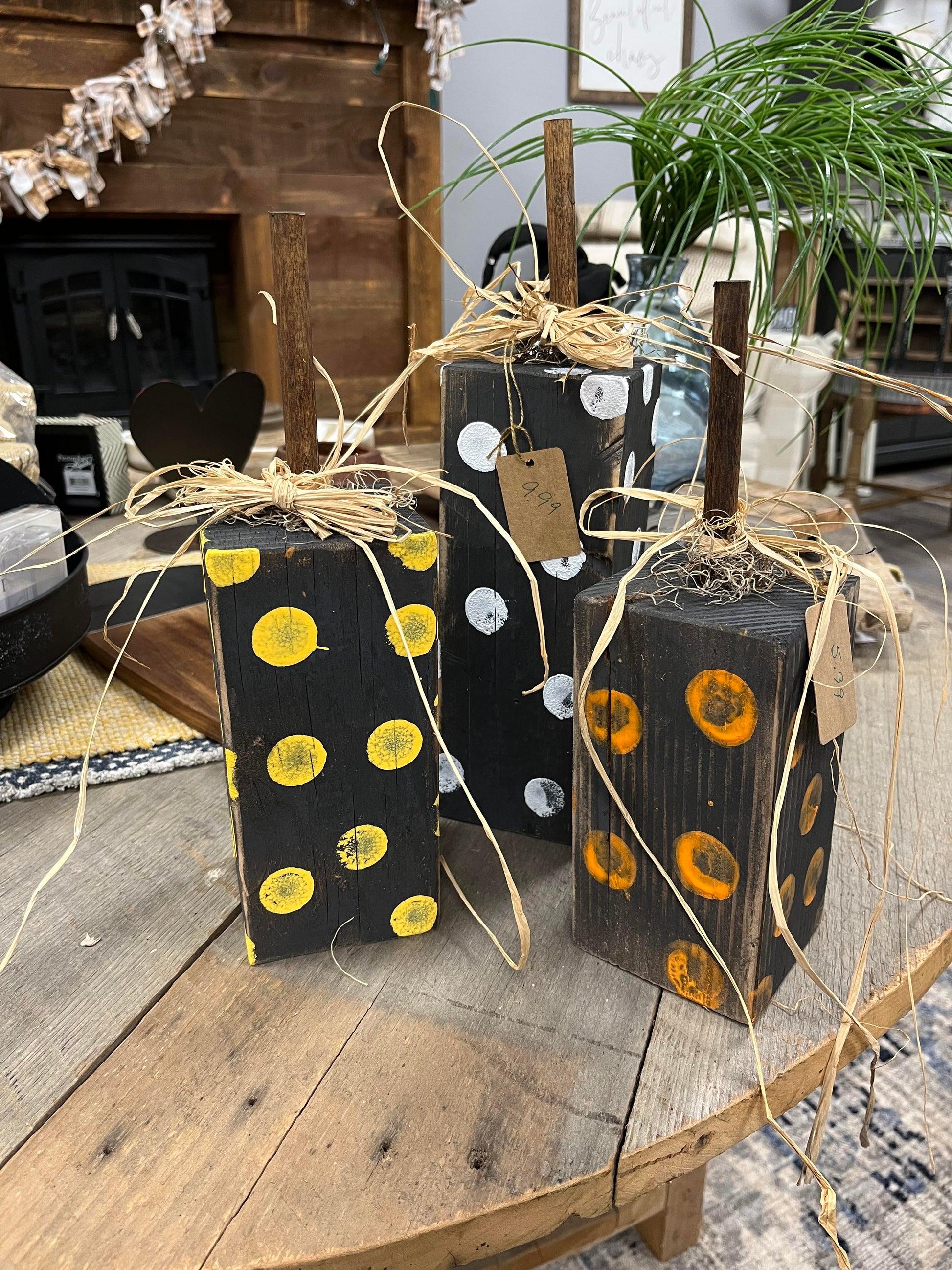 Rustic Pumpkins made from wood. Can be customized with any color paint or ribbon. Set of three