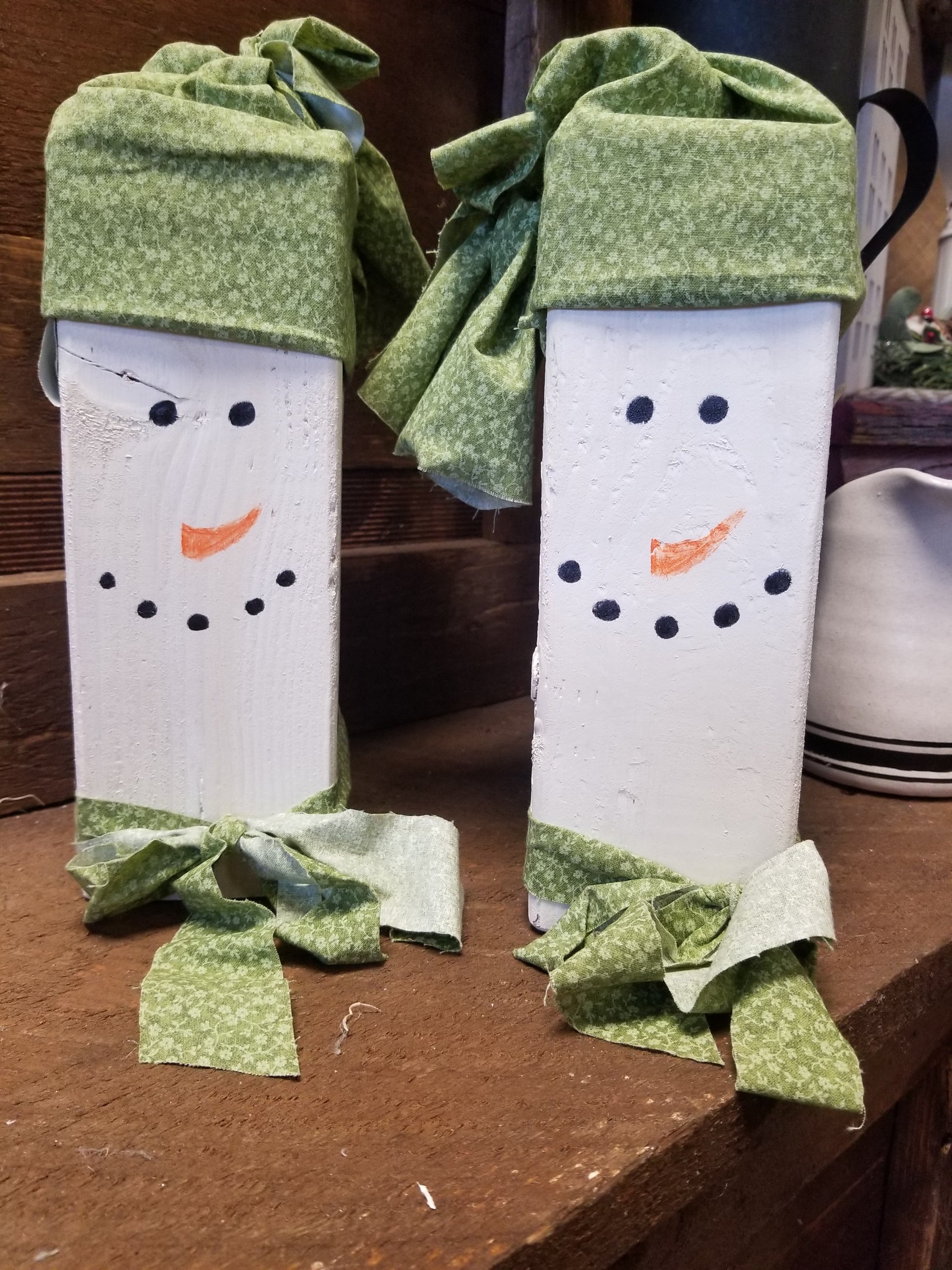 Standing Wooden Snowman - Green Scarf & Hat